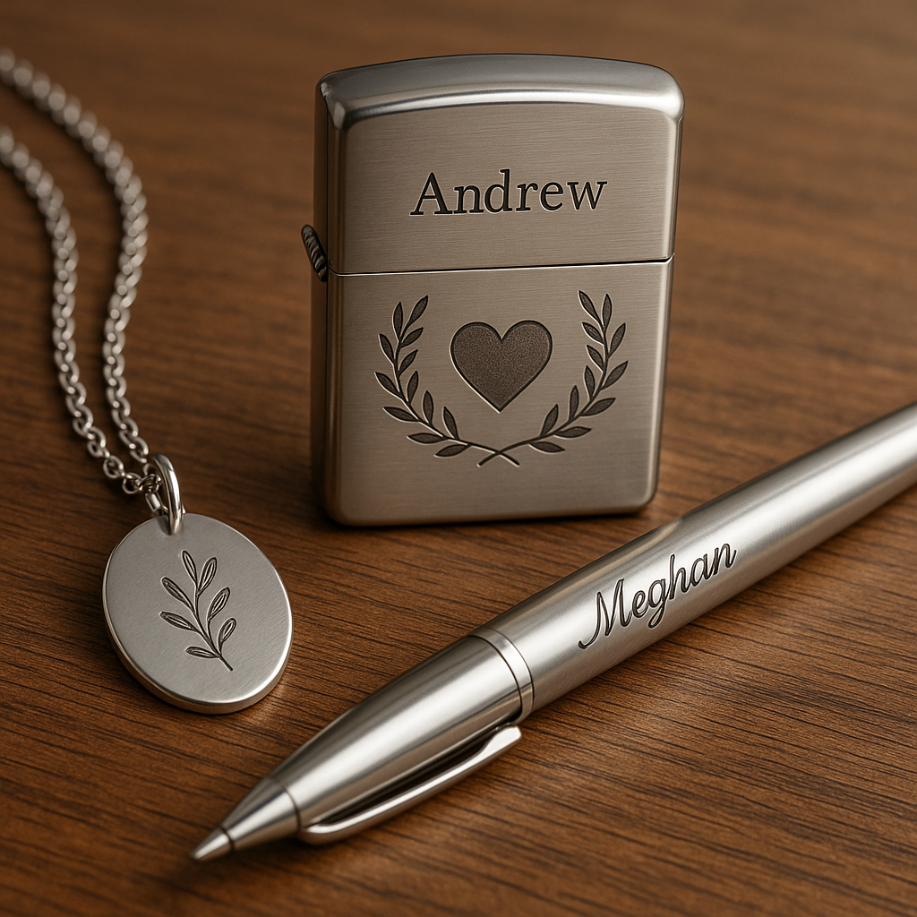 Avec la gravure laser, chaque pendentif, stylo ou briquet devient une pièce personnalisée, pensée pour durer dans le temps.